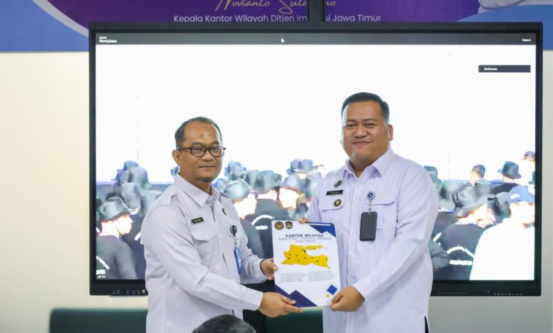 Jbm.co.id-SURABAYA | 30 (tiga puluh) pegawai Kantor Imigrasi Kelas II Non TPI (Kantor Imigrasi) Ponorogo menerima penghargaan Anugraha Wira Wibawa Dharmesti dari Menteri Imigrasi dan Pemasyarakatan, menjelang akhir tahun 2025 di Kantor Wilayah (Kanwil) Direktorat Jenderal Imigrasi (Ditjenim) Jawa Timur, Rabu, 5 November 2025.