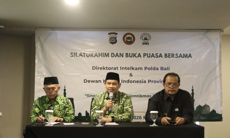 Upaya ini dilakukan Ditintelkam Polda Bali bersama PW DMI Bali melalui kegiatan silaturahmi dan buka puasa bersama di Hotel Quest San, Jalan Mahendradatta, Denpasar Barat, Jumat, 13 Maret 2026.