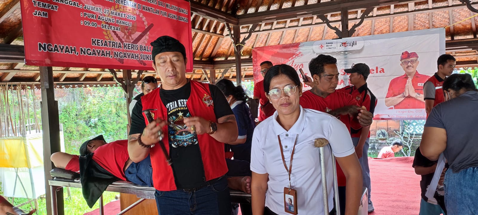 Turut hadir dalam kegiatan tersebut, jajaran pengurus Yayasan Kesatria Keris Bali, diantaranya Ketua I Putu Karyana, Sekretaris Sang Ketut Rencana, Bendahara I Putu Wijaya, Wakil Ketua Mang Elok, Korbid Sosial I Kadek Dwi Adnyana Putra, serta Penasehat Agung Adi Oka. Selain itu, hadir pula Kepala UPTD PMI RSU Bangli, dr. Pariasta.