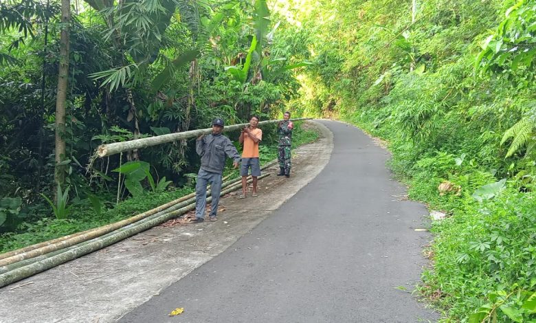 Babinsa dan Warga Bangun Jembatan Bambu di Mendoyo Jembrana