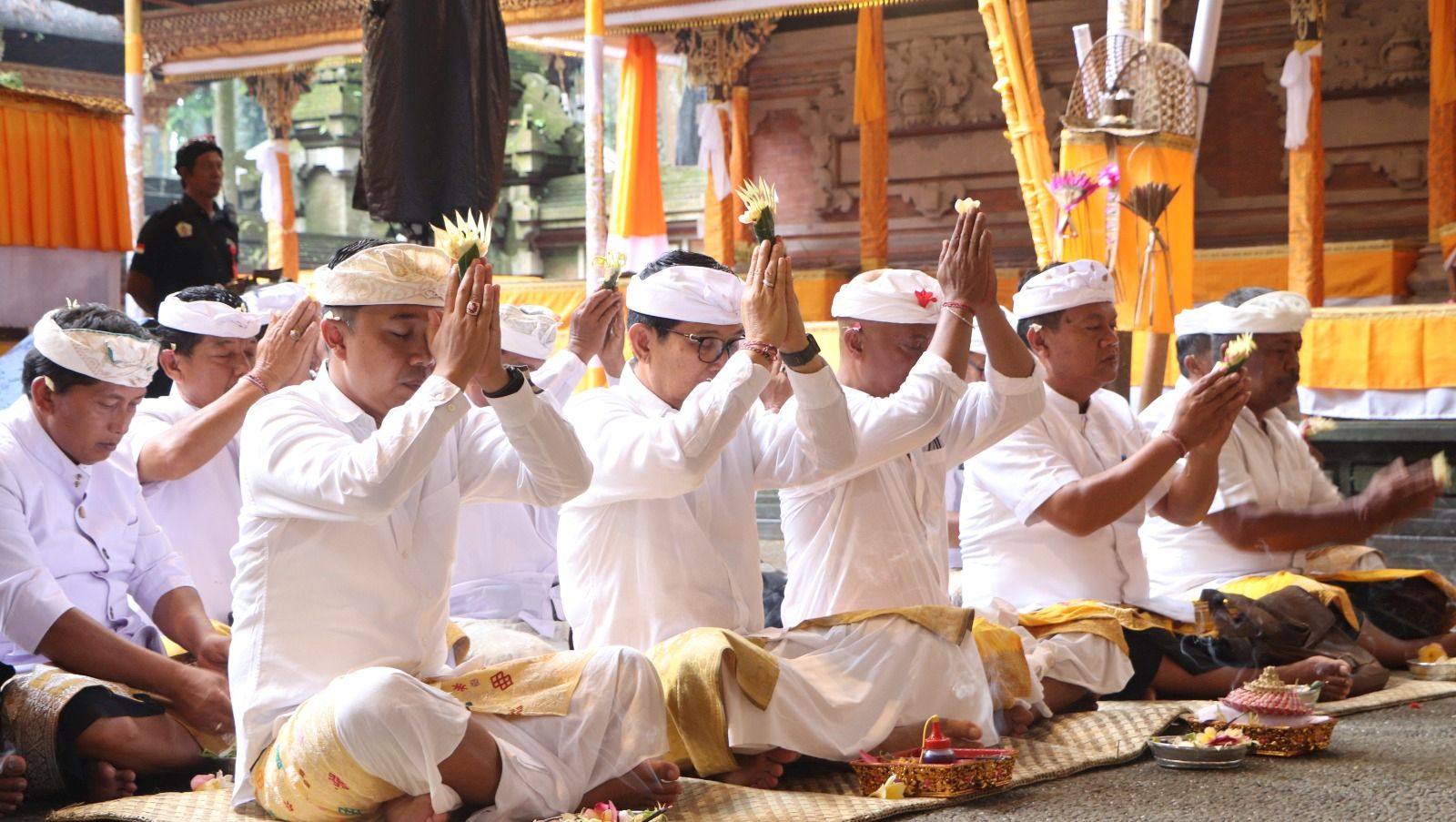 Sebagai wujud sujud bhakti kepada Ida Sang Hyang Widhi Wasa, Bupati Adi Arnawa turut melaksanakan persembahyangan bersama panitia dan krama agung Desa Adat Sangeh dan menyerahkan punia sebesar Rp20 juta yang diterima langsung Bendesa Adat Sangeh, I Gusti Agung Bagus Adi Wiputra.