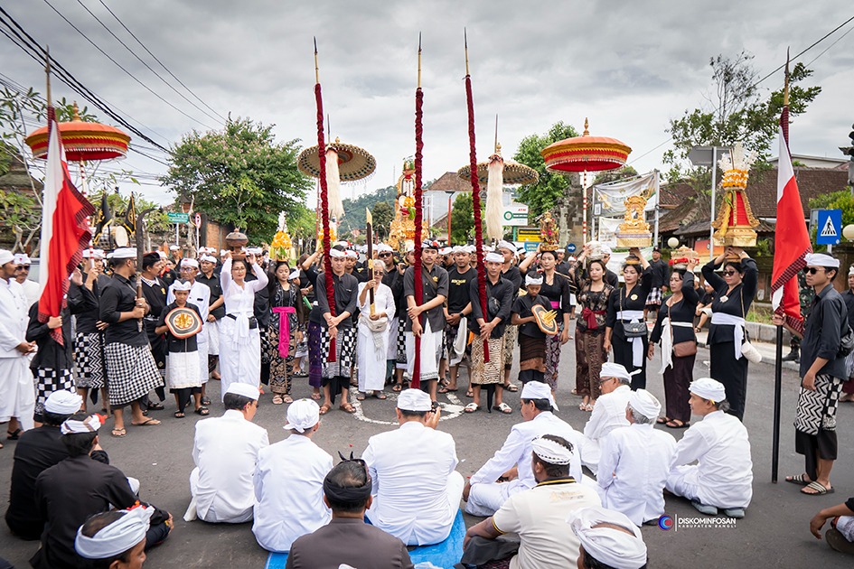 Dalam rangkaian upacara tersebut, juga diiringi persembahan Wayang Kulit yang bersamaan dengan Tari Topeng lalu diikuti Tari Rejang dan Tari Pendet sebelum pemuspaan bersama dilaksanakan.