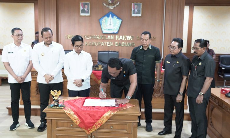 Nota Kesepakatan Rancangan Awal (Ranwal) Rencana Pembangunan Jangka Menengah Daerah (RPJMD) Kabupaten Badung 2025-2029 langsung ditandatangani oleh Ketua DPRD Badung I Gusti Anom Gumanti didampingi Wakil Ketua I DPRD Badung Anak Agung Ngurah Ketut Agus Nadi Putra, Wakil Ketua III DPRD Badung Made Sunarta dan Plt. Sekwan Badung Nyoman Sujendra.