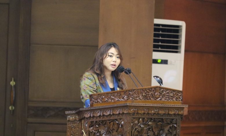 Ni Putu Yuli Artini, S.E., membacakan resmi Pandangan Umum Fraksi Partai Golkar dalam Rapat Paripurna ke-7 Masa Persidangan I tahun sidang 2025–2026 di Gedung DPRD Bali, Rabu, 15 Oktober 2025.