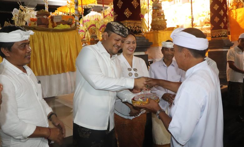 Sebagai bentuk dukungan terhadap pelaksanaan Yadnya, Wabup Bagus Alit Sucipta menyerahkan bantuan dana secara pribadi sebesar Rp 30 juta yang diterima langsung Ketua Panitia Karya, I Wayan Sunarta.
