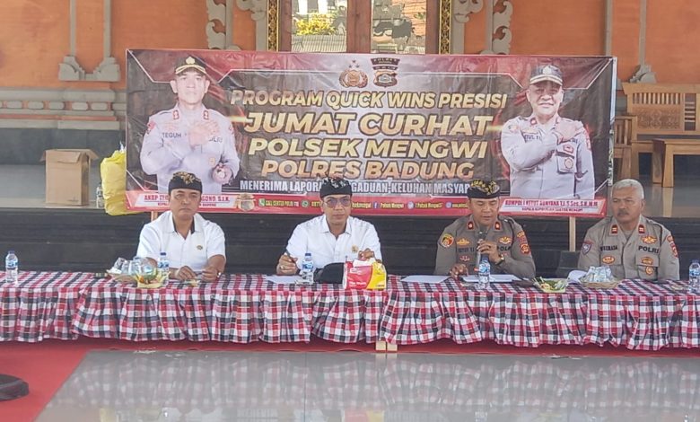 “Dalam hal program Jumat curhat ini, saya sangat bersyukur bisa bertatap muka dengan warga Desa Adat Lukluk mengingat kegiatan ini sudah kami lakukan dari wilayah Mengwi bagian Utara yang nantinya akan sampai di seluruh wilayah Mengwi bagian selatan,” paparnya.