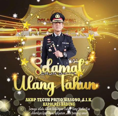 Jbm.co.id-BADUNG | Segenap Keluarga Besar dan Pimpinan dan Redaksi JARRAK BAHTERA MEDIA atau JBM MEDIA mengucapkan Selamat Hari Ulang Tahun (HUT) ke-48 untuk Kapolres Badung AKBP Teguh Priyo Wasono, S.I.K., yang jatuh pada 6 Desember.