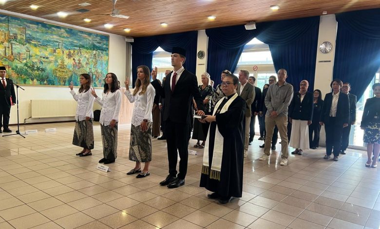 Jbm.co.id-DEN HAAG, BELANDA | Dr. Supratman Andi Agtas selaku Menteri Hukum Republik Indonesia (Menkum RI) didampingi Sekretaris Jenderal Kementerian Hukum, Nico Afinta dan Duta Besar Indonesia Luar Biasa Berkuasa Penuh untuk Belanda, Mayerfas resmi melakukan pengambilan sumpah dan janji setia pewarganegaraan yang berlangsung di Den Haag, Belanda, Jumat 29 Agustus 2025.