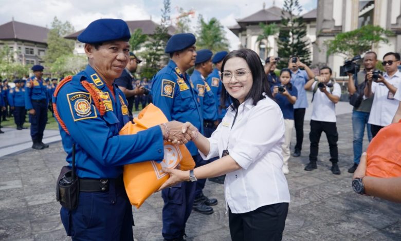 Jbm.co.id-BADUNG | Pemerintah Kabupaten Badung bekerja sama dengan Forum Tanggung Jawab Sosial Perusahaan (TJSP) menyerahkan 325 paket sembako bagi petugas Damkar Kabupaten Badung. Penyaluran paket sembako ini bentuk wujud kepedulian dari Yayasan Bunga Bali, Ikatan Notaris Indonesia (INI), Ikatan Penjabat Pembuat Akta Tanah (IPPAT) Pengurus Wilayah Bali dan Pengurus Daerah Badung serta Bank Pembangunan Daerah (BPD) Bali sebagai penghargaan atas kerja keras kepada tenaga Damkar dalam menangani bencana banjir. Paket sembako diserahkan langsung oleh Nyonya Rasniathi Adi Arnawa selaku Ketua Tim Penggerak (TP) PKK Kabupaten Badung. Kegiatan ini dilaksanakan di Lapangan Puspem Badung,, pada Rabu, (15/10).