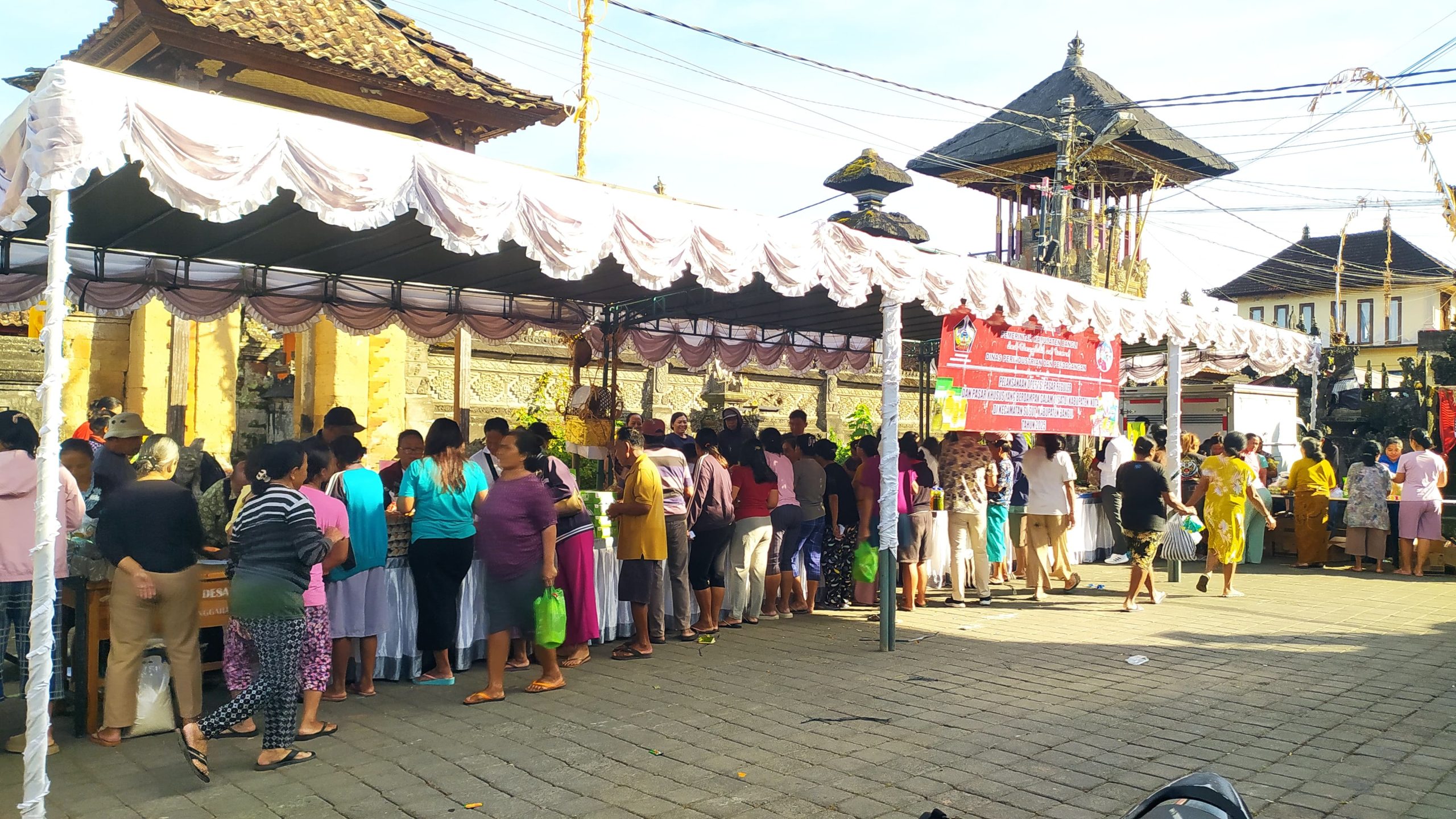 Kegiatan pasar murah dilaksanakan di Halaman Balai Banjar Sulahan Desa Sulahan, Kecamatan Susut, Kabupaten Bangli, Rabu, 30 April 2025 tersebut ludes diserbu masyarakat. (st.renc)