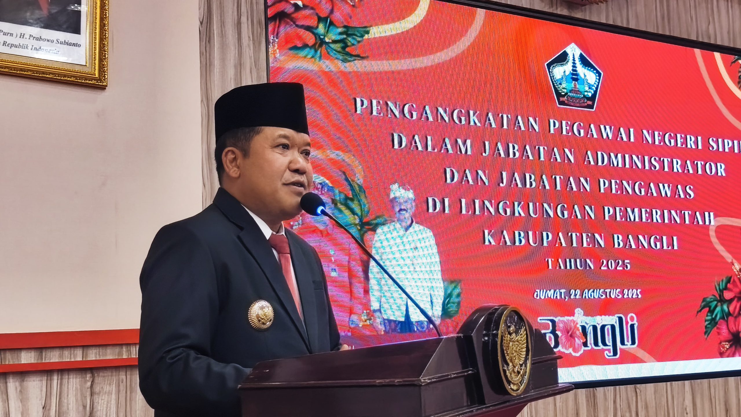 Jbm.co.id-BANGLI |  Dalam upaya meningkatkan kinerja dan optimalisasi pelayanan publik, Pemerintah Kabupaten Bangli kembali melakukan pelantikan dan pengambilan sumpah jabatan kepada sejumlah Aparatur Sipil Negara (ASN) dalam jabatan administrator dan jabatan pengawas di Gedung Bhukti Mukti Bhakti, Kantor Bupati Bangli, Jumat, 22 Agustus 2025.