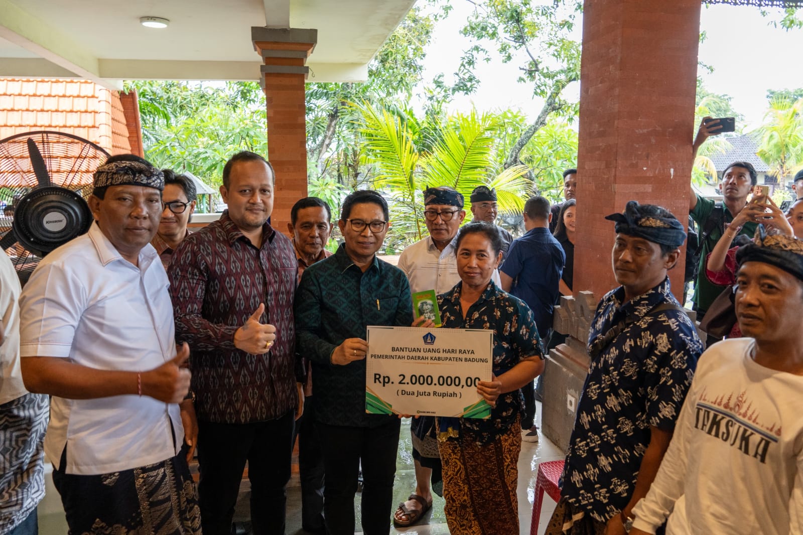 Bupati Adi Arnawa ditemui seusai acara memberikan apresiasi kepada Dinas Sosial Kabupaten Badung yang telah melaksanakan tahapan-tahapan dalam menyukseskan program ini. Dengan adanya bantuan ini, Bupati Adi Arnawa mengharapkan masyarakat agar lebih fokus dalam meningkatkan sradha bakti kepada Ida Sang Hyang Widhi.