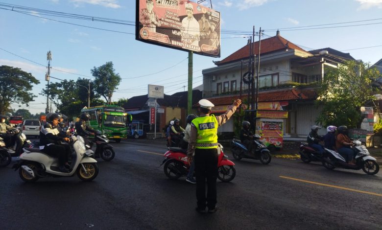 Jbm.co.id-TABANAN | Personel Polsek Kerambitan selalu turun ke lapangan memberikan pelayanan kepada masyarakat melalui pengaturan lalu lintas, Jumat, 17 Mei 2024.