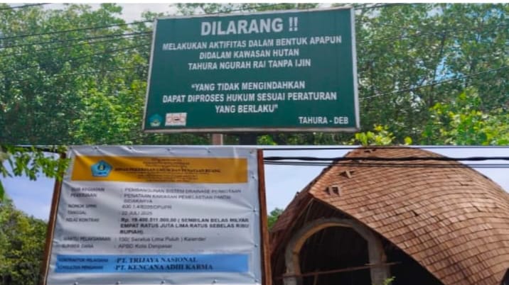 Plang itu terpasang disamping proyek penataan kawasan di wilayah Desa Adat Sidakarya, Denpasar Selatan, yang sebelumnya memunculkan pertanyaan publik karena berlokasi di sekitar Tahura Ngurah Rai, kini mulai terkonfirmasi peruntukannya sebagai akses pemelastian bagi krama setempat, serta normalisasi sungai sebagai bagian dari mitigasi banjir.