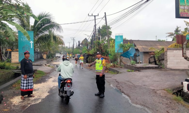 Jbm.co.id-TABANAN | Personel Polsek Kediri dipimpin Kapolsek Kediri I Nyoman Sukadana, S.H.,M.H., bersinergi dengan Pecalang melaksanakan pengamanan jalur pelaksanaan Run 6K dan 10K Nuanu 2024, yang Start dan Finish di Nuanu Desa Beraban, Kediri, Kabupaten Tabanan, Minggu, 2 Juni 2024.