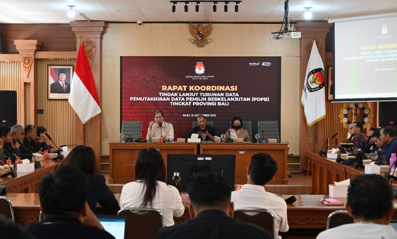 Jbm.co.id-DENPASAR | Anggota KPU Bali, I Gede John Darmawan memimpin Rapat Koordinasi (Rakor) tindak lanjut turunan data Pemutakhiran Data Pemilih Berkelanjutan (PDPB) tingkat Provinsidi Ruang Rapat KPU Bali, Rabu, 24 September 2025.