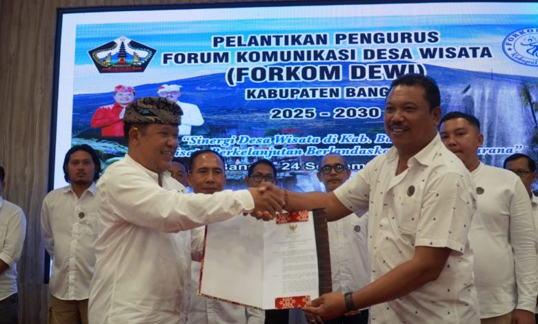 Jbm.co.id-BANGLI | Bupati Bangli Sang Nyoman Sedana Arta secara resmi melantik pengurus Forum Komunikasi Desa Wisata (Forkomdewi) Kabupaten Bangli periode 2025-2030. Dengan mengusung Tema “sinergi desa wisata di kabupaten bangli menuju pariwisata berkelanjutan berlandaskan Tri hita karana”. Acara pelantikan berlangsung di Gedung Bhukti Mukti Bakthi Kantor Bupati Bangli pada Rabu, (24/9/25).