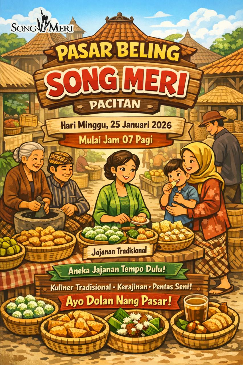 Pacitan,JBM.co.id-Di tengah arus modernisasi yang kian deras, Desa Sukoharjo, Kecamatan Pacitan, menghadirkan sebuah oase budaya yang mengingatkan pentingnya merawat akar tradisi. Melalui Pasar Beling Song Meri yang digelar pada Ahad (25/1/2026), masyarakat setempat bersama para pegiat budaya menunjukkan bahwa kebudayaan lokal bukan sekadar kenangan masa lalu, melainkan fondasi masa depan.