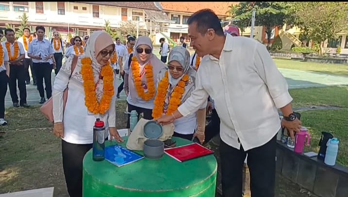 Jbm.co.id-DENPASAR | Kepala Sekolah SMAN 1 Denpasar, Made Rida, S.Pd., M.Pd., memperkenalkan Teba Modern sebagai sistem pengelolaan sampah organik mandiri yang inovatif.