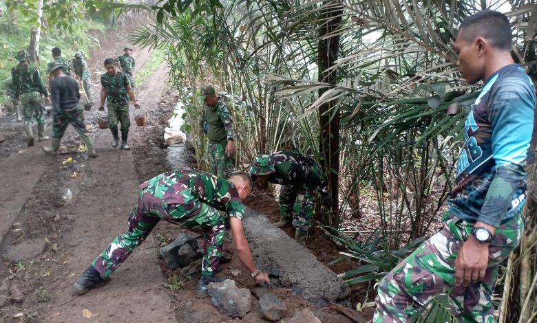 Sasaran pokoknya, Kodim 1619/Tabanan melakukan pembuatan senderan dan pembetonan jalan hingga mencapai 25 persen, Jumat, 21 Pebruari 2025.