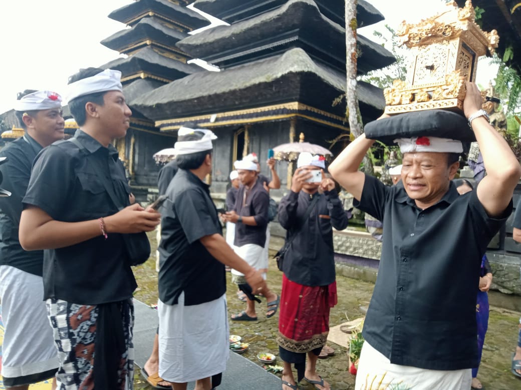 Prosesi itu merupakan rangkaian dari karya agung Ida Bethara Turun Kabeh yang rutin dilaksanakan di Pura Agung Besakih. Prosesi nedunang dipimpin Bupati Bangli, SN. Sedana Arta. Ikut juga nyonya Sariasih Sedana Arta, Wakil Bupati, Wayan Diar dan nyonya Diar. Bupati Bangli mamunut pralingga Ida Bethara menuju Pura Penataran Agung Besakih. Ketua DPRD Bangli dan Wakil Ketua DPRD Bangli ikut menurut pralingga Ida Bethara untuk distanakan di Pura terbesar di Bali.