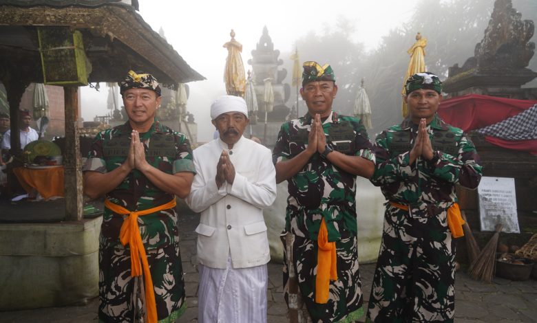 Jbm.co.id-KARANGASEM | Panglima Kodam IX/Udayana, Mayor Jenderal TNI Piek Budyakto melaksanakan doa bersama di Pura Lempuyang Luhur, Banjar Dinas Purwayu, Desa Tribuana, Kabupaten Karangasem, Jumat, 15 Agustus 2025