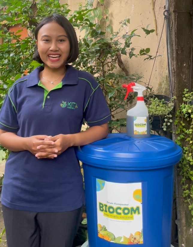 Menariknya, Biocom tidak hanya berfungsi sebagai komposter, tetapi juga dapat dimanfaatkan untuk menanam sayuran seperti tomat di bagian atasnya. Dengan demikian, masyarakat memperoleh manfaat ganda: pengurangan sampah sekaligus hasil tanaman produktif.